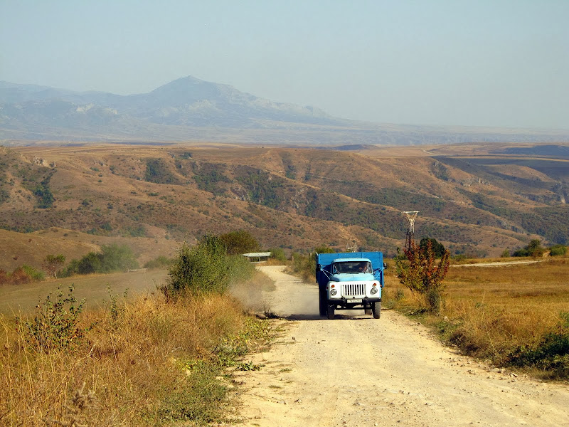 Do Goris wiezie nas złapana na stopa terenówka. Kierowca bardzo sie wkurza gdy toperz robi mi zdjecie na ktore on tez sie zalapuje. Zamiast patrzec na droge odwraca sie (nie zwalniajac) , zdejmuje sloneczne okulary i dopytuje o przyczyne robienia mu zdjec z zaskoczenia. Na szczescie udaje sie jakos sprawe zalagodzic i nie wpasc do rowu.