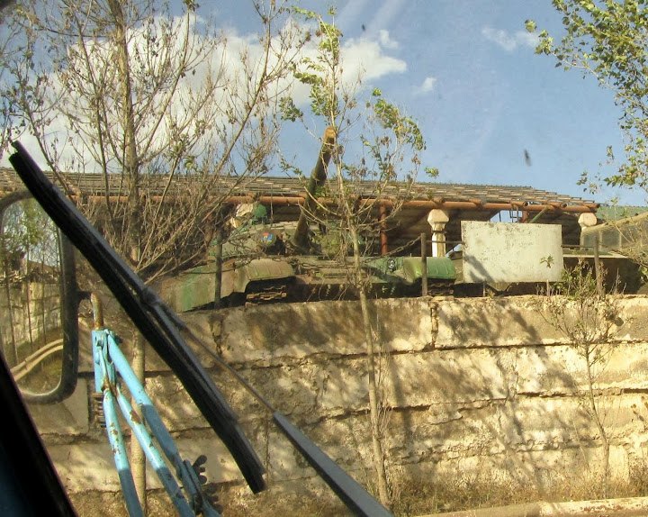 Wysiadamy kolo czynnej jednostki wojskowej, gdzie jest duzo starych czołgow. Ucze sie robic zdjecia "z biodra" ale poki co slabo mi to idzie.