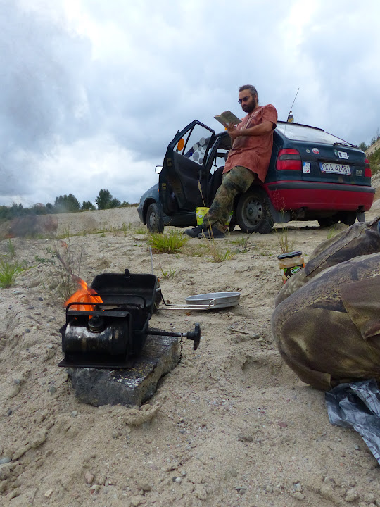 A klimatycznych miejsc tu dostatek- kotlinki, stosy kamieni, nadjeziorne łachy piachu. W takich okolicznosciach nawet oblednie nadziane chemia kociolki ze sloika smakuja wybornie. Kabaczek tez ma tu jakis wiekszy niz zwykle apetyt. Pozera cala butle i domaga sie wiecej pokwikujac, oblizujac sie, pogryzajac rekawek swetra i patrzac wymownie w oczy.