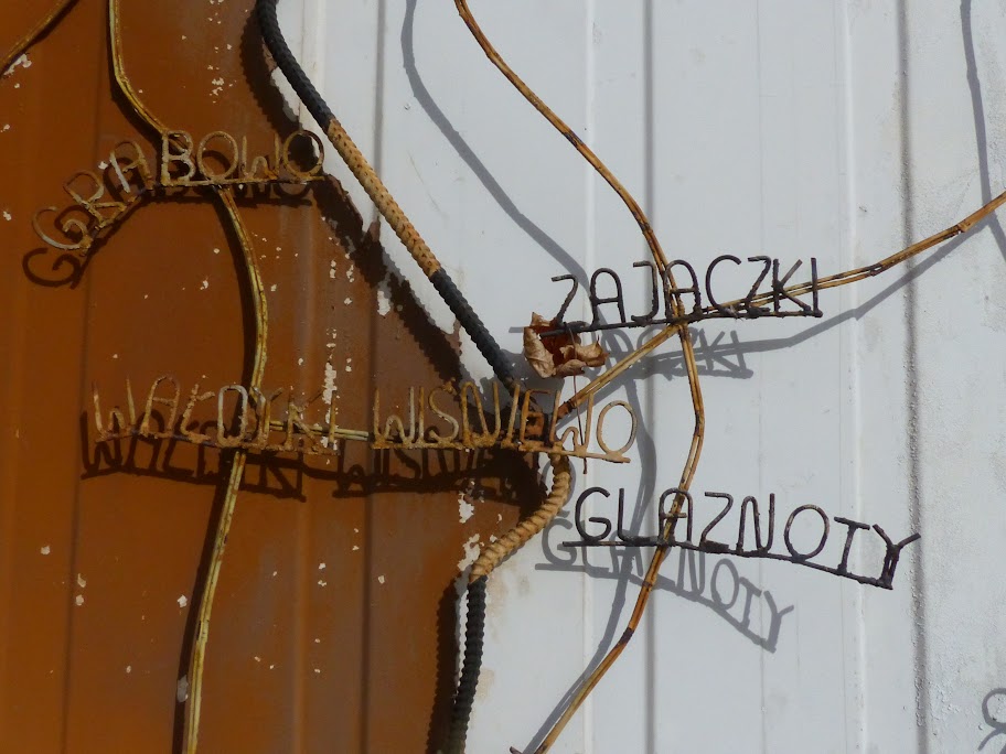 Za Bierutowem mijamy fajna pracownie artystyczna. Nabywamy tam wilkinowego pajaka w rozmiarze XXXL i kota hustajacego sie na ogonie jak małpa. Caly przybytek pachnie lawenda bo nia sa faszerowane aniolki produkowane hurtowo. Facet plecie, babka szyje i maluje.