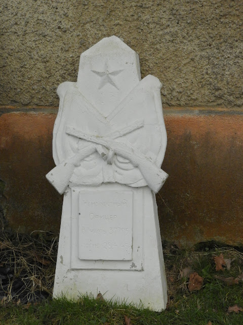 Maly pomniczek odarty ze wszelakich tablic, symboli, napisow. Acz jego ksztalt nie pozostawia złudzen jakie funkcje pelnil. Zwlaszcza ze widac zarys gwiazdek ;)