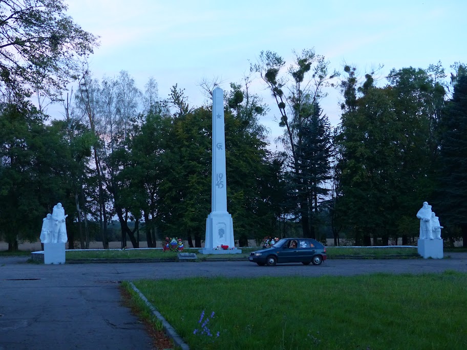 pomnik, ktorego jakos cudem jeszcze nie zdekomunizowali. Zawiera klasyczny napis o slawie bohaterom II wojny swiatowej, w terminie uznawanym na wschodzie. Napis jest o tyle nietypowy, ze wylacznie po rosyjsku (zwykle takowe u nas byly dwujezyczne) i jakby wykonany odrecznie! Jakby ktos sobie przyszedł i farbką wymalowal co mu w duzy grało. Farba sie łuszczy, pewnie za jakis czas bedzie juz nieczytelny...