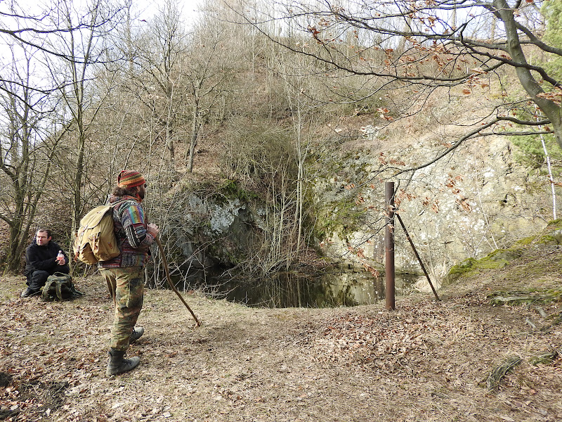Na stromym zboczu mijamy Czarna Perełke- zalane male wyrobisko dawnego kamieniolomu