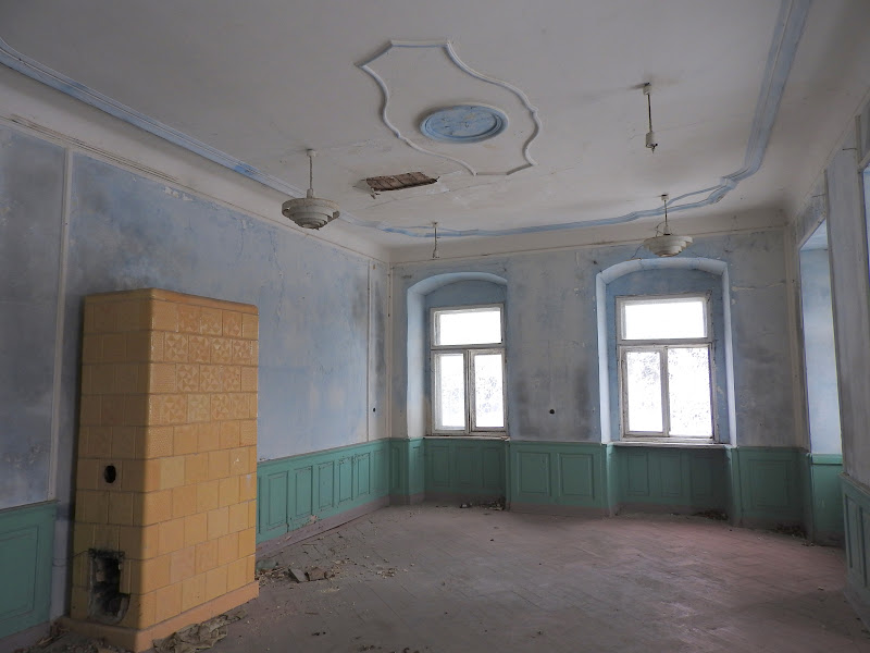 Wejscie do srodka nieskomplikowane, w srodku mozna cos wypatrzec oprocz golych scian Tu np. jest stary kominek ,ciekawe sufity, komunistyczne lampy i stosy dokumentow w archiwum. Mozna sie posmiac z dawnych przewinien pracownikow z lat 60 tych- nie oczyscil koryt zgodnie z procedura, zniknal odswiezacz na denaturacie, zorganizowal wiec w celu nieokreslonym.