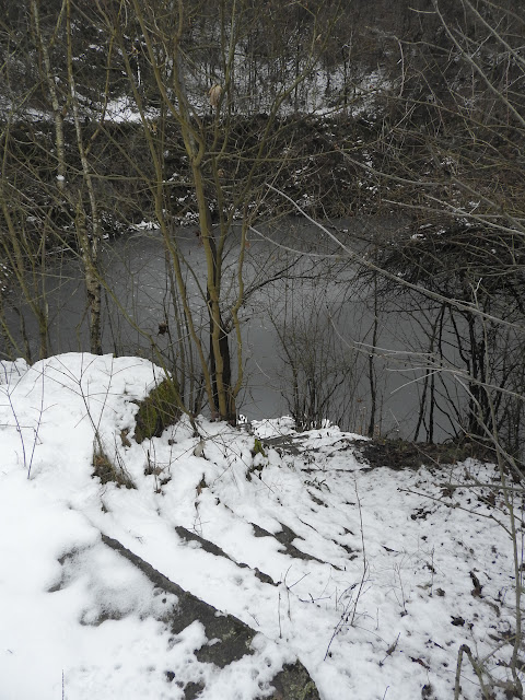 A tu juz krater szczytowy ktory latem pewnie nada sie pod kapiel- sa nawet schodki prowadzace do lustra wody, z ktorych, pomna na podklady wiaduktu, nie mam odwagi dzis skorzystac.
