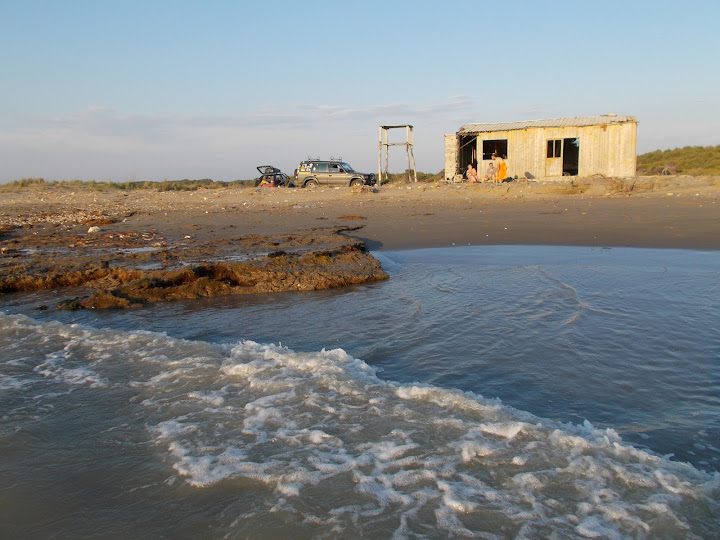 Dalej stoi kilka opuszczonych , w roznym stopniu zruinowych domkow. Na samej plazy. Nie wiem czy jakies dawne knajpy, dacze czy rybackie budy. Jeden z domkow zasiedlamy. Na duzym, pachnacym drewnem tarasie stawiamy namiot.