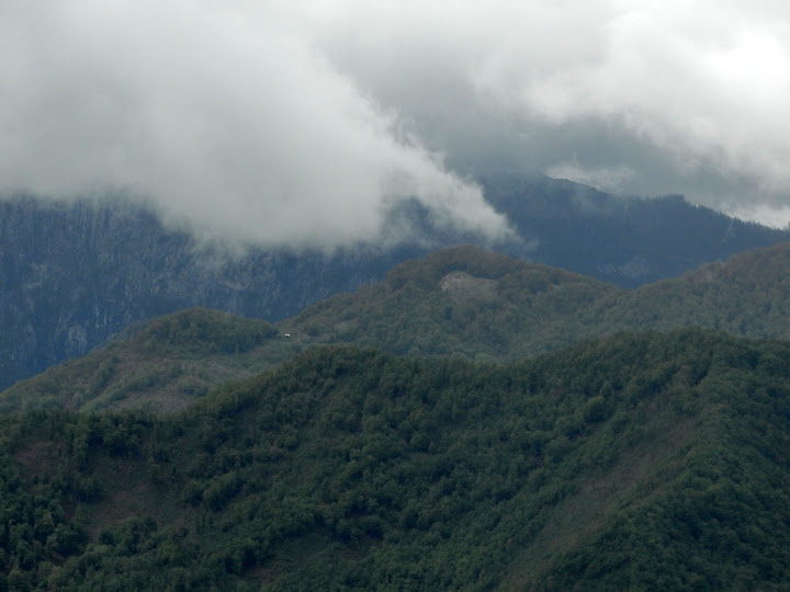 Tam gdzie jeszcze przed chwila byla jednolita biala sciana - zaczynaja sie pokazywac kolejne pasma gor. Jakos tak jest ze na styku ladnej i brzydkiej pogody sa zawsze najciekawsze widoki.