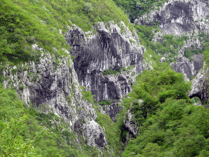 Chyba w polowie takie metro srodgorskie przebiegajace wewnatrz skal. Trasa wiedzie z Belgradu w Serbii do Baru w Czarnogorze. Nie wiem czy cala jest drozna, nie wiem czy mozna przejechac ja ciagiem czy jedynie jakies wybrane kawalki. W strefie miedzygranicznej (bo granice sa tu spory kawalek od siebie oddalone) widzimy na wiadukcie pociag. Taka rozklekotana osobowka pomalowana w grafiti.