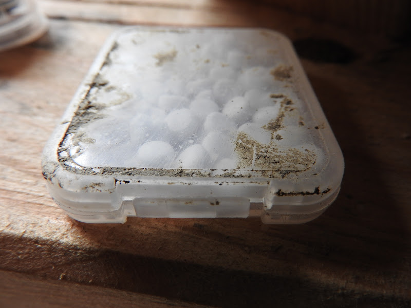 Ciekawe czy zmije ją tak samo polubily jak stara? Widzialam je tu kilkakrotnie, maksymalnie sztuk 6. Dzis zmij nie ma. Pizga tak deszczem i wiatrem ze kazda szanujaca sie i madra zmija zapewne jest teraz gdzie indziej. Na wyposazeniu wiaty jest za to pudelko z jakimis bialymi tabletkami. Moze po nich sie widzi kolorowe węże niezaleznie od pory roku?