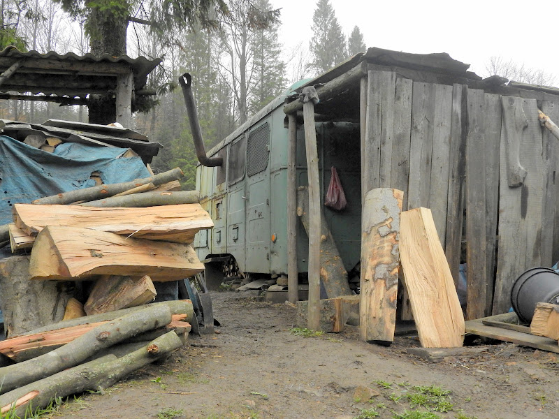 Sympatyczne obozowisko wsrod blota po pachy :) Szkoda ze nie ma przewidywanych opcji wynajmowania takich baraczkow na nocleg! Dzis pusto na wszystkich wyrebach, nawet nie ma do kogo zagadac...