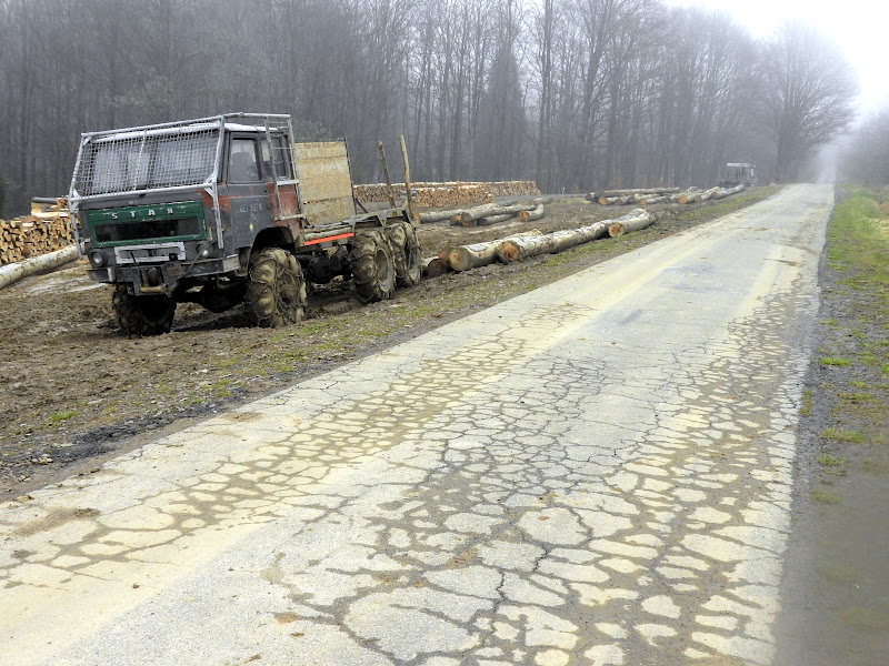 Miedzy Liszna a Roztokami jest kilka wyrebowych placow obfitujacych w stare ciezarowki zrywkowe, o kolach na lancuchach, orurowanych i okratowanych kabinach, czesto bez swiatel, szyb i takich tam burzujskich udogodnien i bajerow. Za to sa wyciagarki!