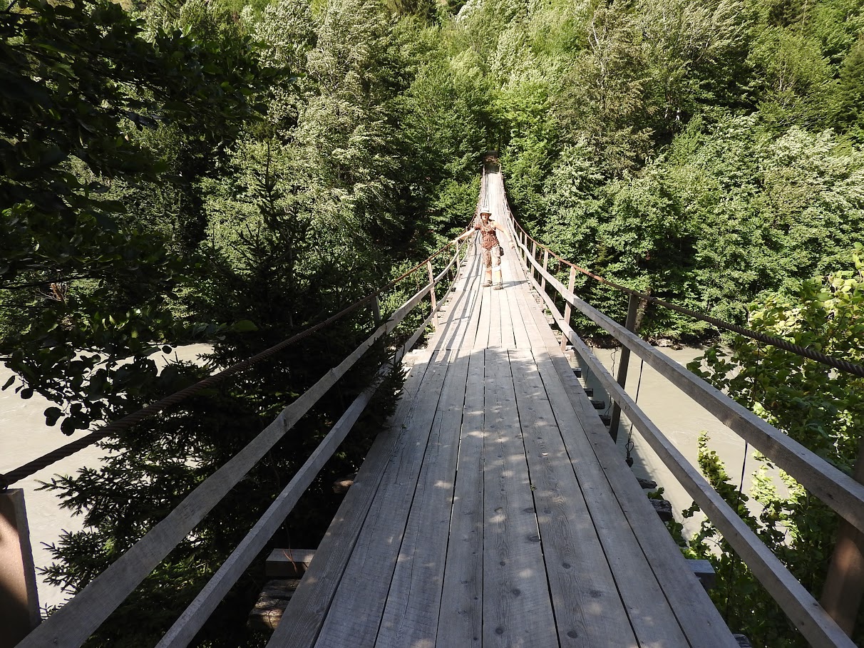 Most nad wąwozem jest caly ażurowy co poteguje wrazenie wysokosci i tuptania w powietrzu. Jest on bardzo solidny- bardzo ciezko go rozbujac ;)