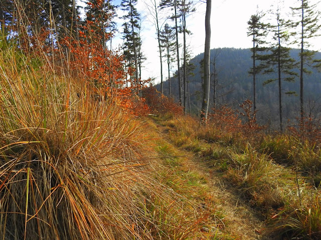 Z Bukowca zjezdzamy na tyłkach po stomiźnie, co z racji na dywan z suchych liści jest nawet calkiem przyjemne.