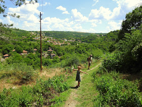 A my kontynuujemy wycieczkę po terenach nad rzeką Rusenski Łom i jej dopływami. Ciekawe są tutaj te krajobrazy, bo zupełnie inne niż np. w okolicy Madary, gdzie wystającą skałę było widać z daleka. Tu skały "idą w dół", w postaci wąwozów wyrytych w równinie. Łatwo można by je przeoczyć. Jedziesz sobie, plaskato, wszędzie tylko nudne uprawy i nagle łup! wąwóz, skały, zabudowania rozsiane po różnych poziomach i urwiskach.