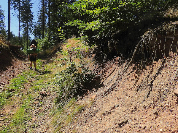 Zbocza jak to zbocza - poręby, korzenie i maliniska (acz maliny coś nie obrodziły w tym roku, małe, marne i wodniste)