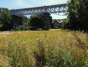 Jakiś czas temu obiło mi się o uszy, że Adria zakończyła swą działalność. W sklepie obok jednak dowiadujemy się, że ogólnie wciąż działa i ma się dobrze. Acz akurat my trafiliśmy dziś w zły termin - urlop właścicieli. I w sumie chyba dobrze, że tak wyszło. Z sentymentu do tego miejsca pewnie byśmy na jakieś piwko wstąpili - i to byłoby to pół godziny, którego potem by nam bardzo zabrakło. My o tym w słoneczne południe jeszcze nie wiedzieliśmy. Ale los pewnikiem znał przyszłość i jak zwykle dobrze naszymi ścieżkami pokierował! Są więc tylko szybkie zakupy i nurkujemy pod malowniczy wiadukt.
