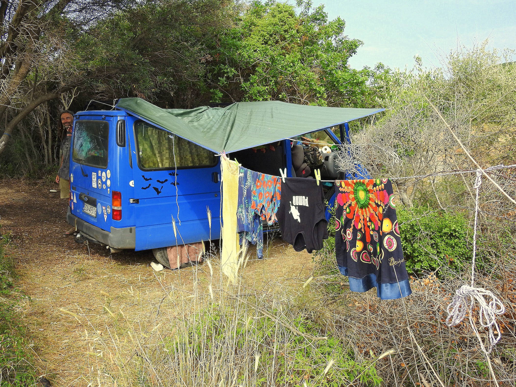 Na naszej polance przez sporą część dnia jest cień, a tutaj się to bardzo przydaje! Tu jednak jest zupełnie inne słońce i temperatury niż w Polsce (czy nawet w Bułgarii) i po całym dniu wycieczek na patelni, gdzie napierdziela słońcem solidnie (bo ani chwili nie ma pół chmurki) - człowiek ma jednak ochotę na chwilę się schować do cienia. Nawet buba. Serio. Nawet rozkładamy przy busiu plandekę - i to nie od deszczu, ale od słońca! Poważnie! Teraz jak to piszę i od kilku miesięcy ustawicznie marznę - nie chce mi się w to uwierzyć, że mogą istnieć miejsca na świecie, gdzie nawet bubom jest momentami za goraco! :)