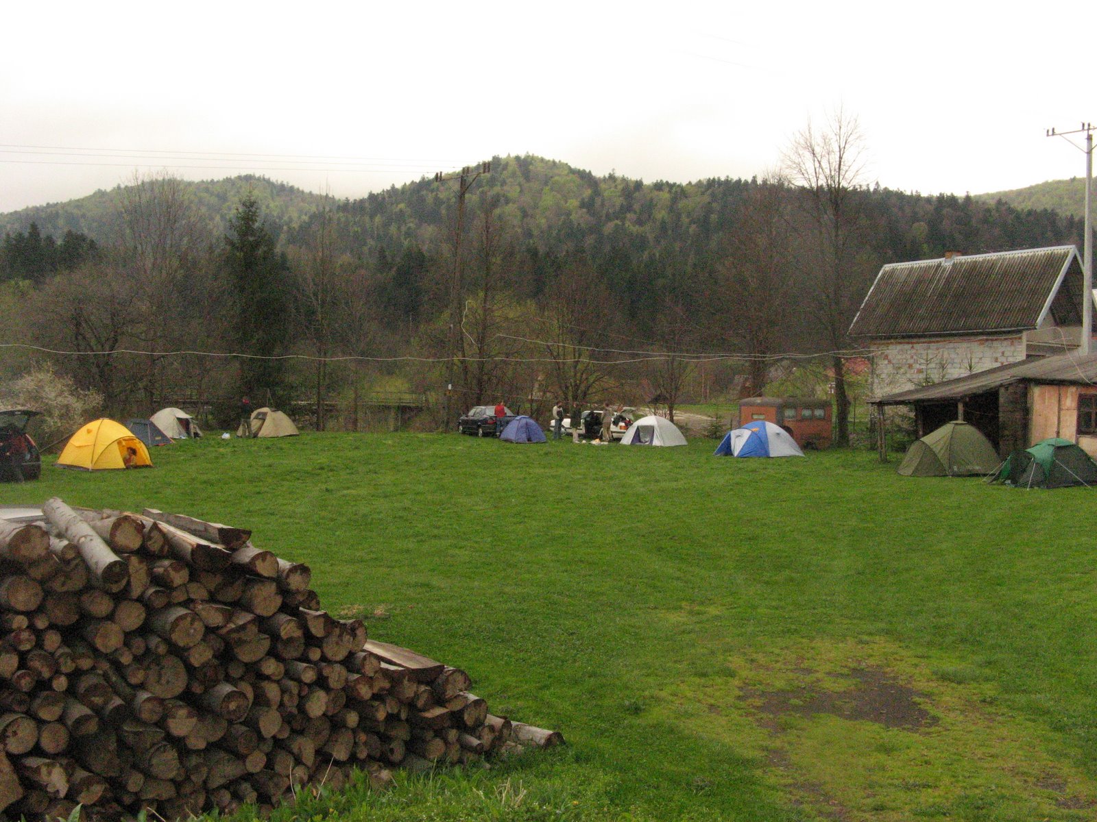 W Cisnej rozbijamy się w na polu namiotowym. Widać, że zbliża sie termin klasycznej majówki, bo robi się fest ludnie.